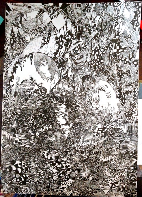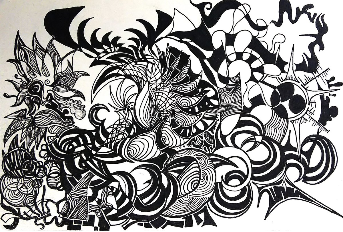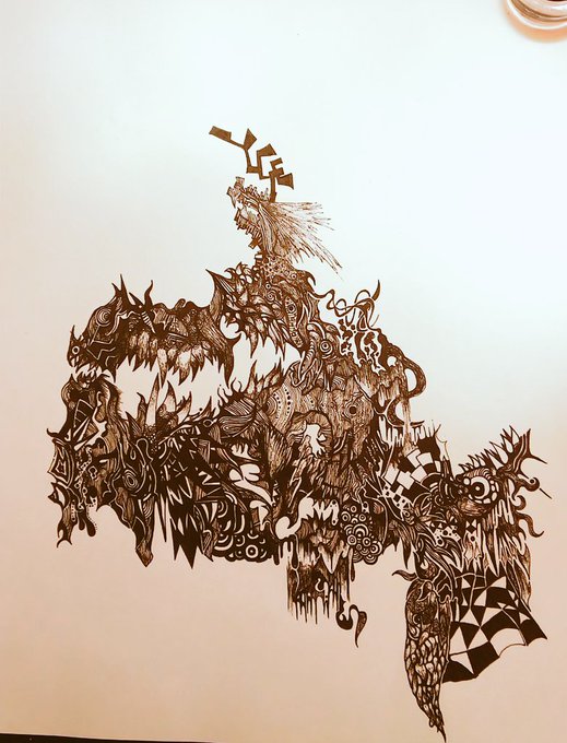 1 5 何かいてるかじぶんでもわからん途中 ヨォーシ(‘ー‘) #ペン画 19/05/25 15:09