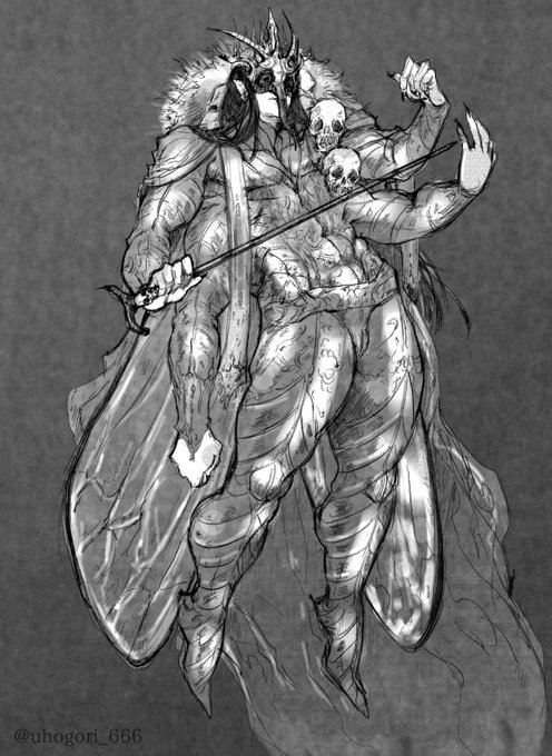 8 28 #神話版深夜の真剣お絵かき60分勝負 @sinwa1d 【虫、虫にまつわる者】 蝿の王ベルゼブブ 20/05/31 23:02