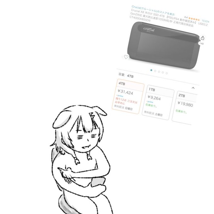 5 22 #できたてころね 20%OFFの表記に負け残ったボーナスで衝動的に4TBの外付けSSDをポチる 23/07/12 02:08