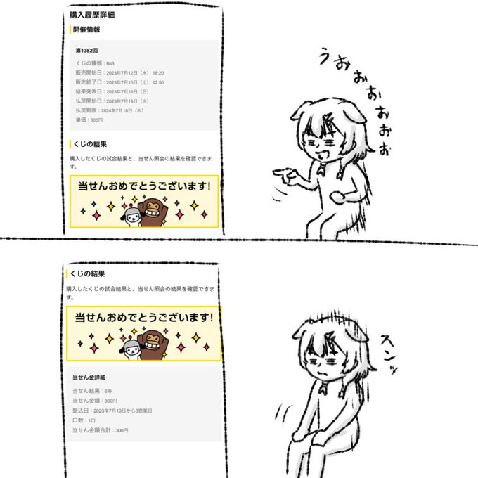 7 19 #できたてころね 定期購入してるBIGがついに当選! からの300円だったとある日の社畜 23/07/19 00:24