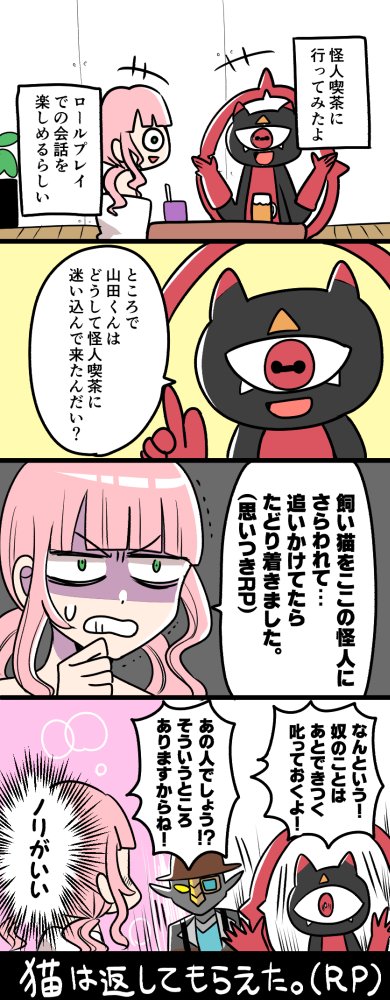 38 103 怪人喫茶の思い出。 相手をしてくれたのはPr.ヒカゲルトと罪砲さん #VRC怪人喫茶 #VRC漫画 #VRChat 21/08/27 16:37