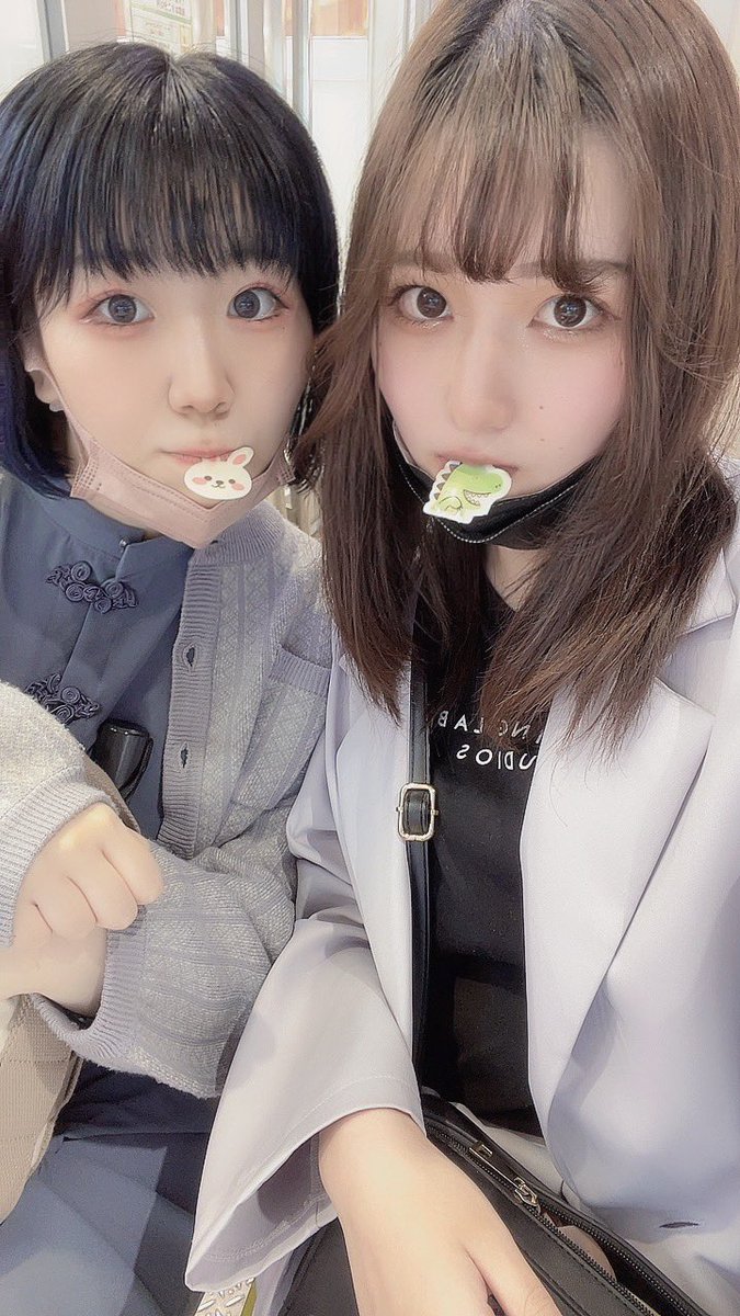 今日はカフェでも配信でもドリンクやごはん、ありがとうございました❣️ 23日生誕祭をやるかなたと出勤前に可愛いあいすたべてきた🐰🦖!!! 明日!彼シャツday!います👔!!