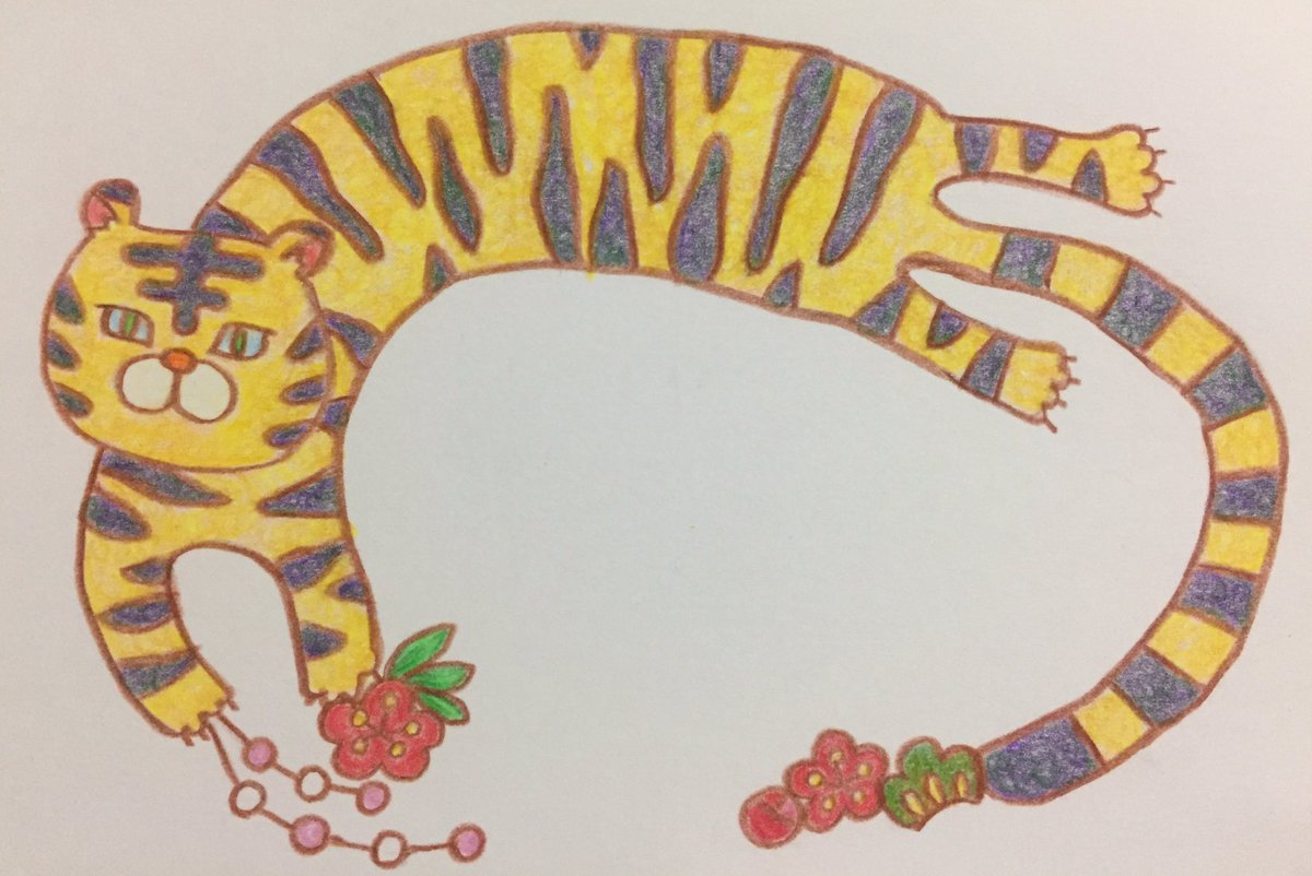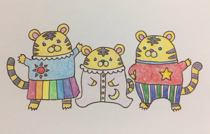 とらさんきょうだい #年賀状 #イラスト #色鉛筆