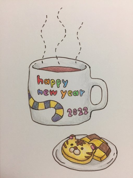 ほっとひといき #年賀状 #イラスト #色鉛筆