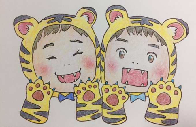 0 9 とらさんきょうだい #年賀状 #イラスト #色鉛筆 22/02/05 00:56