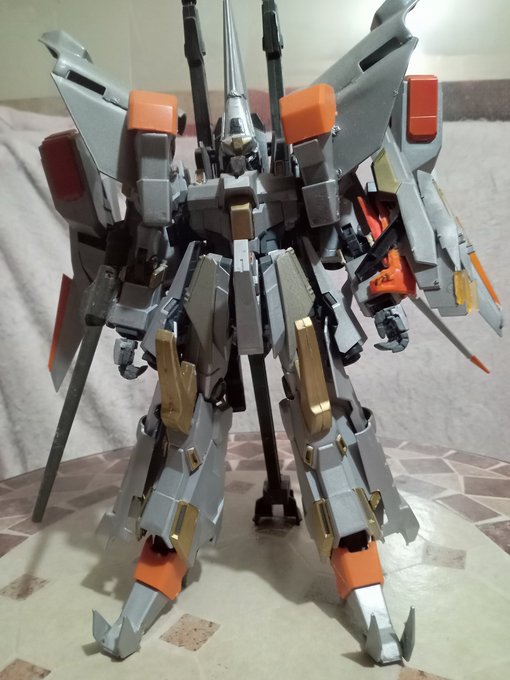 #エルガイム #ガンプラの画像貼るとRTされると聞いて #フルアクションエルガイム #後ろ姿 #ガンプラ好きと繋がりたい #ガンプラは自由だ フルアクションエルガイムです。こちらは部分的にフルメカニクスバルバトスのフレームを使ってます。バスターランチャーはkog顔負けの折りたたみ式に改造です(笑)