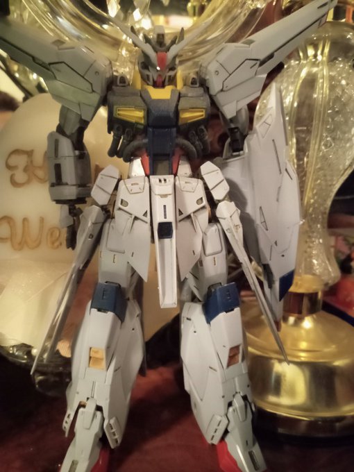 #ガンプラ #ガンプラの画像を貼るとRTされると聞いて #ガンプラはどんな自由な発想で作ってもいいんだ mgウイングガンダムです。これも完成品で買いました。好きなガンプラなので黄色の部分をゴールドにして当時のhg風にリメイク妄想中。背中のシールド剥がれなくて困ってます(汗)