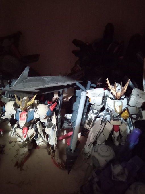#ガンプラ #ガンプラはどんな自由な発想で作ってもいいんだ #ガンプラの画像貼るとRTされると聞いて mgバルバトスにフルメカニクスルプスレクスとグレイズの外装を組み込みました。鉄血外伝ゲームソフトの影響受けて白ベースです。
