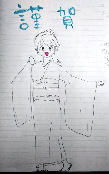 描き初め!振り袖法子! 今年は去年以上に頑張って法子を応援します٩(๑òωó๑)۶