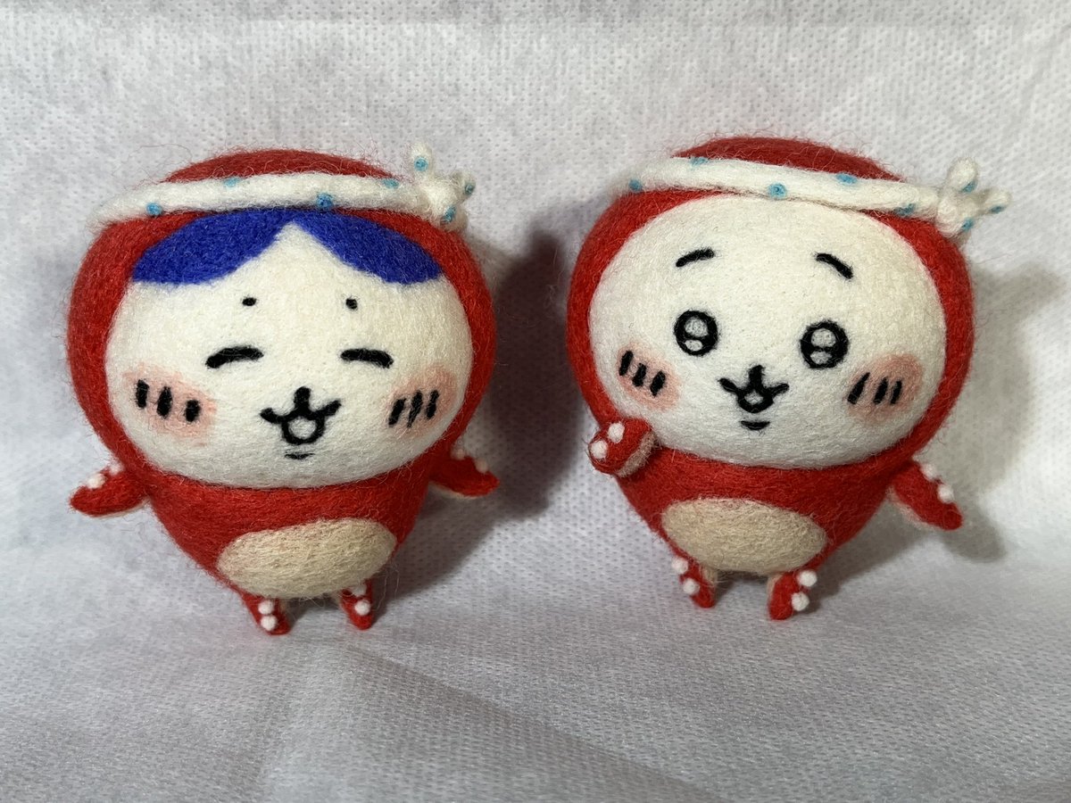 ちいかわ、ハチワレ お泊まり🌙 #ちいかわファンアート #羊毛フェルト