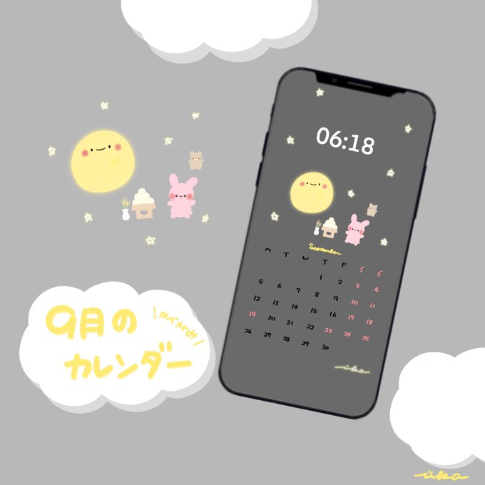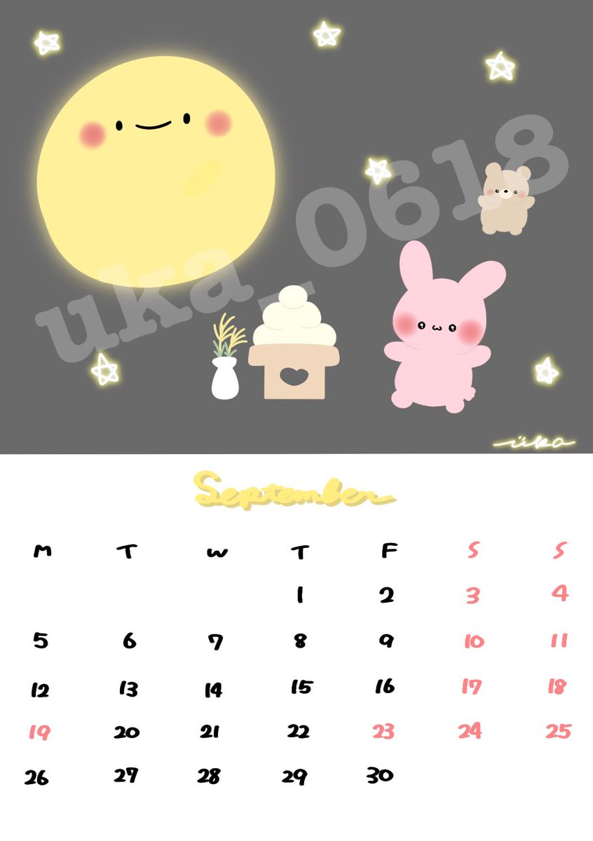 #ukaのフリーイラスト 9月のカレンダー壁紙ができたよ〜✨ もう使ってみたんだけど少し落ち着いててかわいかった🐰🤍 みんなもぜひ使ってみてね! #イラスト #illust #illustration #カレンダー #壁紙