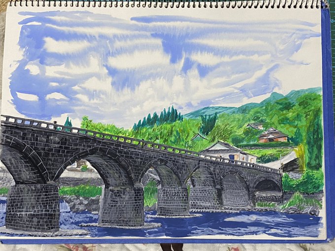 1 4 #水彩画 #絵 #風景 #石橋 #写生 21/07/20 22:59