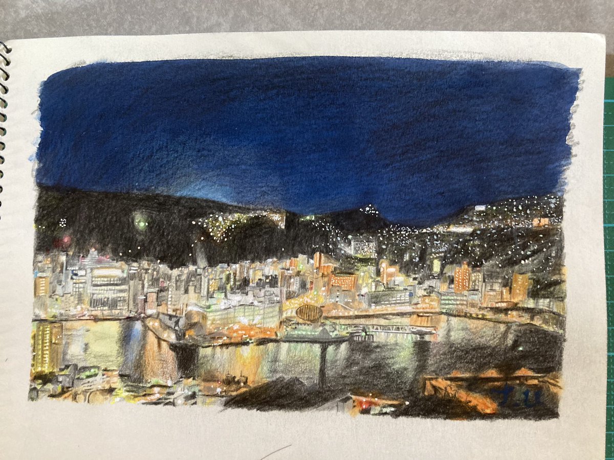 2 14 長崎市の夜景です🌌 #色鉛筆画 #色鉛筆 #絵 #夜景 #長崎 22/06/06 22:52