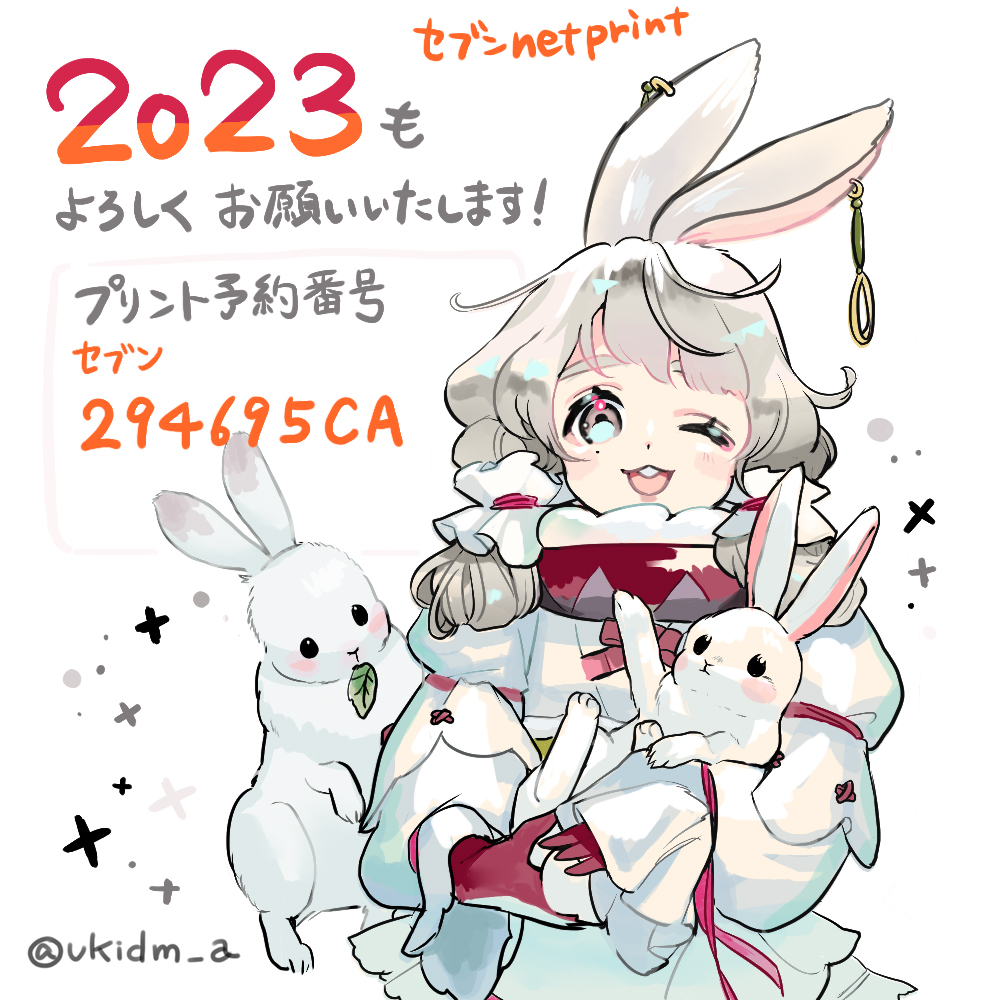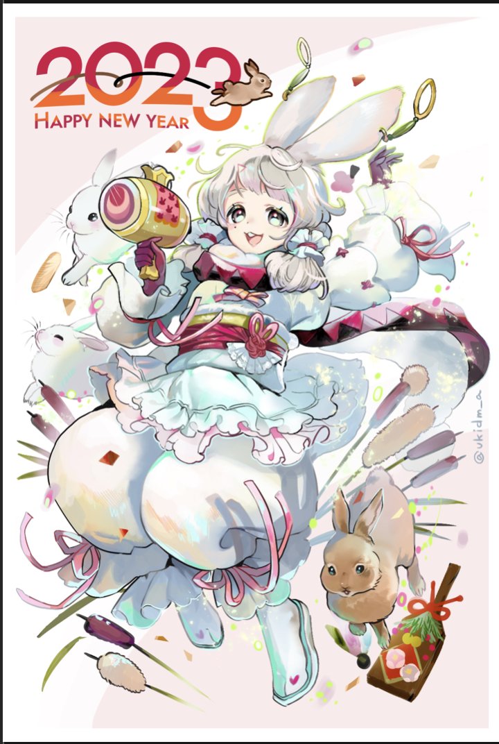 わーい明けましておめでとう!2023年もみなさまよろしくお願いいたします! 今年もセブンのネットプリントに年賀状イラストを登録してみました。因幡の白兎的ななんちゃって着物衣裳…!ぜひ印刷してみてね〜〜 予約番号:294695CA(〜2023/01/07 23:59) #ネットプリント #年賀状 #イラスト
