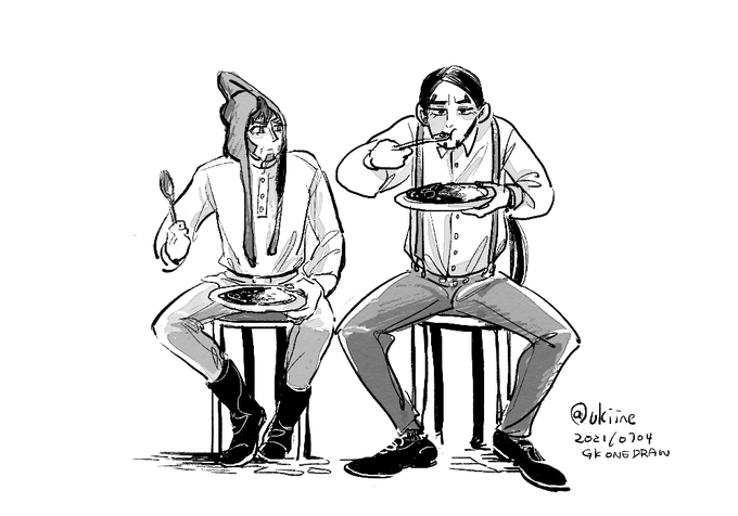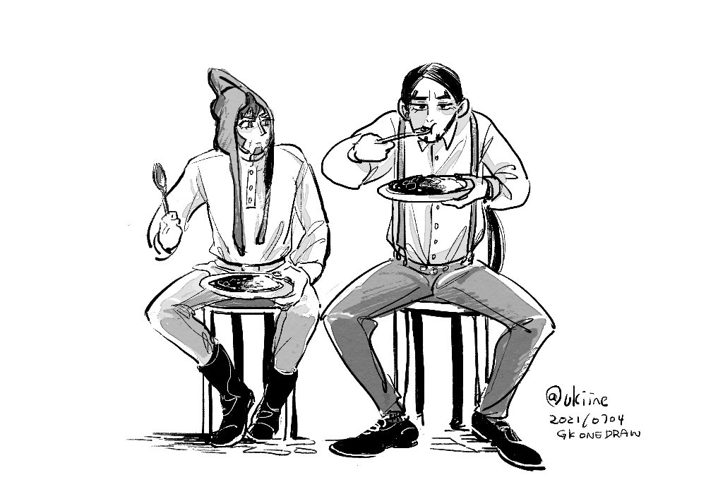 61 278 #ゴールデンカムイ版深夜の真剣お絵描き60分一本勝負 【お題】ヴァシリとボウさん🍛 21/07/05 00:18