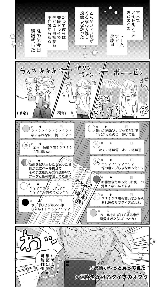 88 927 #さとめぐプチ #0504愛しさとめぐる運命_サンプル ラブコメ折本です 付き合ってない五伏が騒いだりドキドキしたり変な空気になったりします☺️ サンプル一部繋がってません 最後に部数アンケぶら下げます🙇♀️ (1/3) 23/04/27 19:24