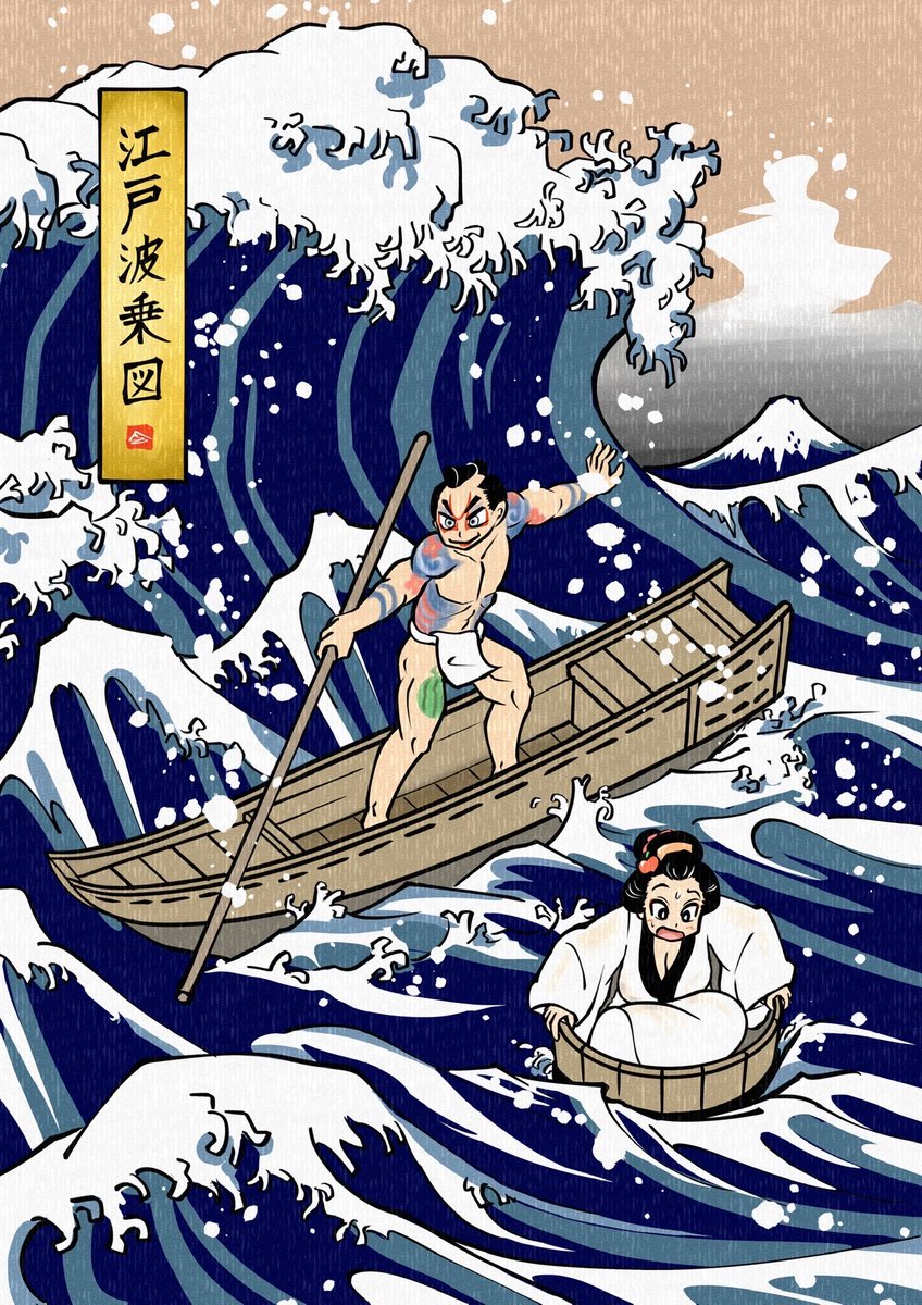 ■ 浮世絵イラスト:恐怖!海賊イルカ🐬 かつて、日本の海を荒らし回った存在がいた。その名も海賊イルカ。音もなく船に近づき、一気にジャンプして飛びかかるのだ。高い知能を駆使して、現代でも隙を狙っているとか...。 #浮世似顔絵 #イラスト好きな人と繋がりたい #絵描きさんと繋がりたい