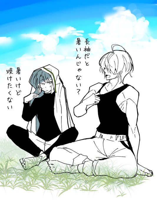 桑名くんの黒タンクトップに想いを馳せていたハズが一周回って裸パーカーに戻って来た絵