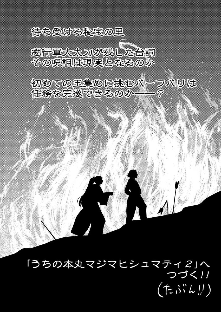 「うちの本丸マジマヒシュマティ」(4/4) 終わりです! もし紙の本が欲しい方がいらっしゃったら、とらのあなさんにあるので覗いてみてね!続編の2と3もあるよ! ec.toranoana.shop/joshi/ec/item/…