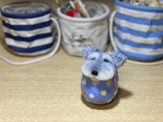 0 2 シュナたまご🥚完成〜🙌 今回はちょっと小さめです。 相変わらず時期はずれ…😓 #イースターエッグ #シュナたまご #シュナだるま #シュナ #犬のいる暮らし #羊毛フェルト 20/04/24 11:19