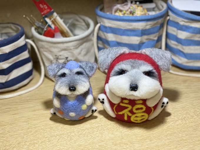 1 1 おシュナ様with一人囃子👍 #シュナウザー #羊毛フェルト #いぬおの肉球堂 21/10/13 20:19