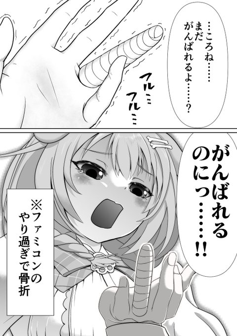 995 4490 「令和にファミコンやり過ぎて骨折した女」という称号が好きすぎて描きました それはそれとしてころさんお大事に。 #できたてころね 22/03/05 04:30