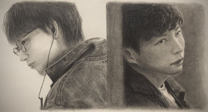 光と影 太陽と月 伊吹&志摩のバディが好きで深夜にせっせと描きました😅 感想「志摩さんの顔がむじぃ」 #綾野剛 #星野源 #MIU404 #鉛筆画 #MIU404イラスト企画