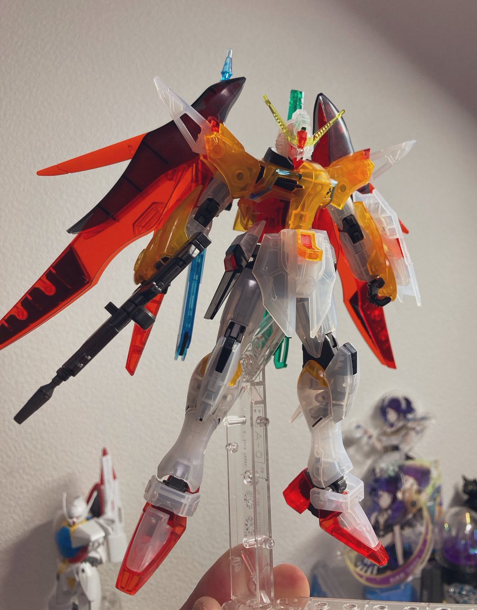 HGデスティニーガンダム(ハイネ専用機)クリアカラー完成っす。 クリアランナーAの色合いが「夏!」って感じで詰まってるので、夏場にもう1回組みたいなぁってところです。 #ガンプラ
