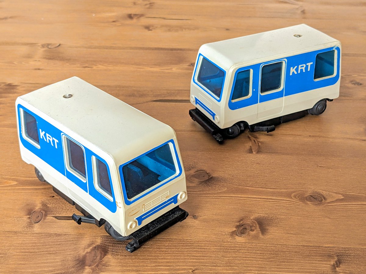 家で片付けをしていたらこんなものが 沖縄海洋博の新交通システムKRTのおもちゃ? 以前中古で手に入れたんですが、海洋博当時にレールとかと販売されてたんでしょうか…?全然詳しいことがわからない🤔