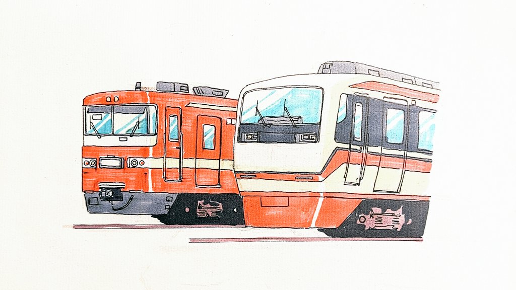 特急車制作小話〜構想編〜 お気づきの通り種車はサロンエクスプレス東京です 作り出してから「なんかちがう…」とならないよう、種車購入前に色んな角度から描いてイメージを固めました 飾り帯に前パン、中央運転台…種車のシルエットに好きな要素やその時代らしい要素を足して引いて遊んでます