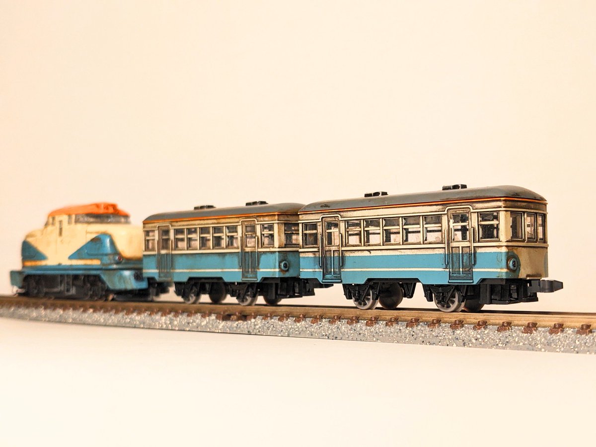 子どもたちから「アイアンキング」「シルバー仮面」のあだ名がつけられていた6〜70年代特急 西武のような、京成のような、西鉄のような、南海のような…この時代のどこかの私鉄にいそうな感じに仕上がりました