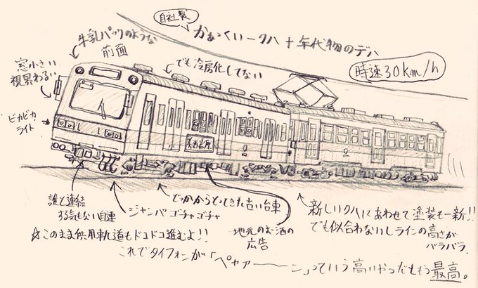 こういう小綺麗なのに垢抜けない+そろった相方がいない系クハも好きです。地鉄のクハ91とか。(大昔の落書き再掲)