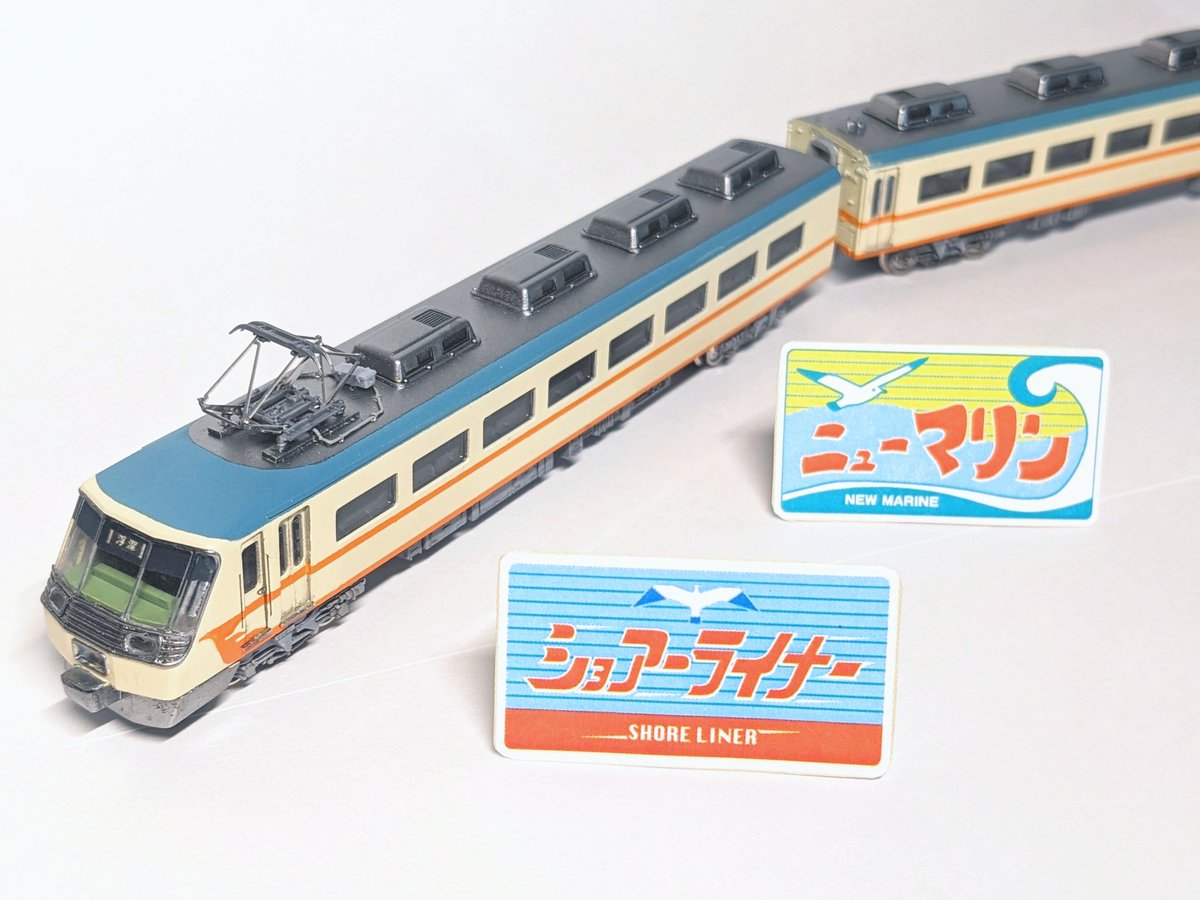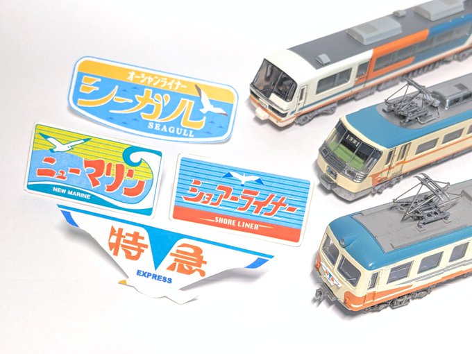 49 234 今回もヘッドマークを作ってみました。ショアーライナーは当時の偉い人がノースショア線の響きが好きで命名したビジネス特急、ニューマリンは公募で決定した観光特急…って感じで。 ついでに他のヘッドマークも一緒に 23/07/01 14:20