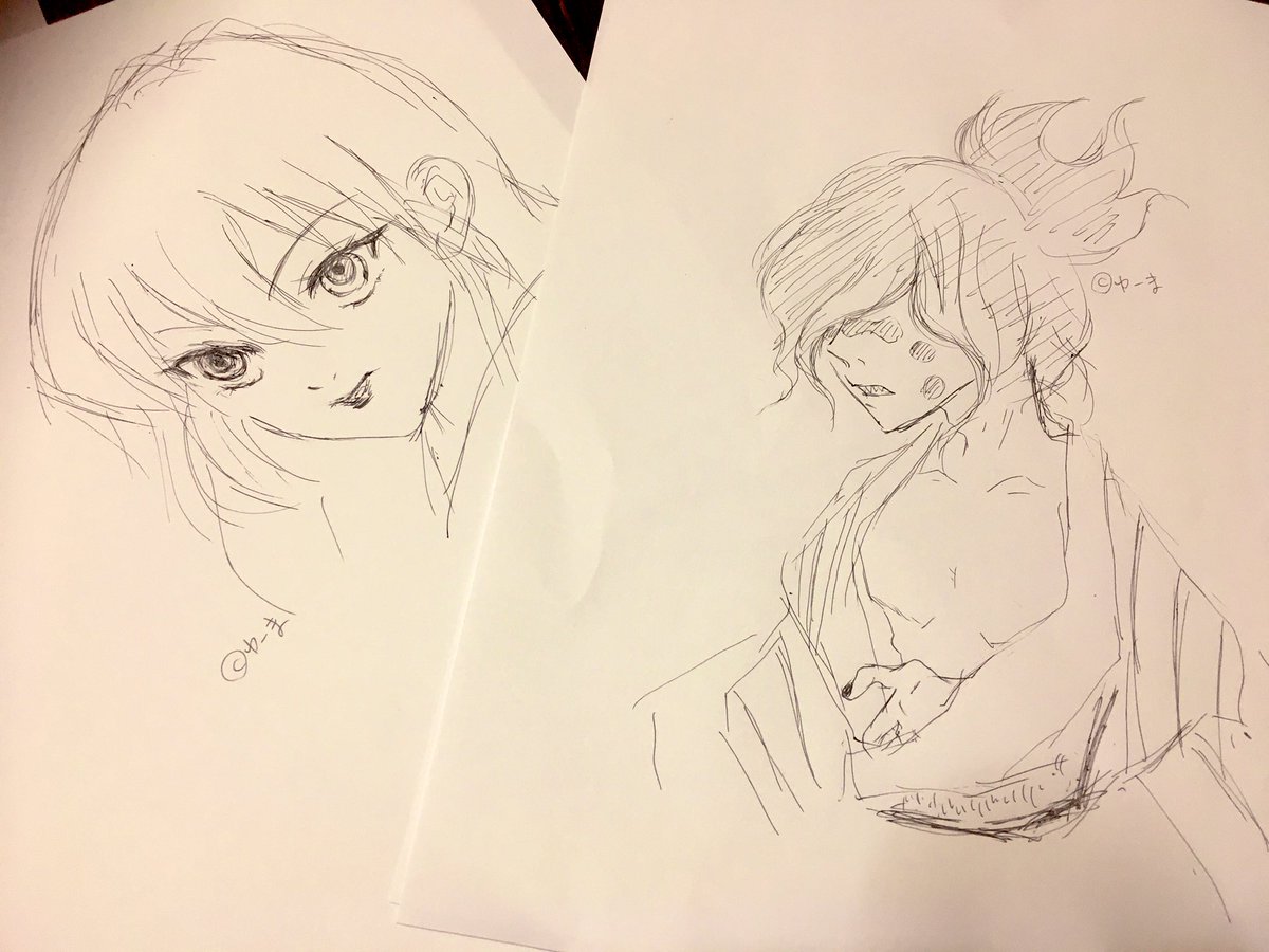 1 25 久々にざっとボールペン描き 鬼滅の刃 妓夫太郎と梅 #鬼滅の刃 #イラスト 20/06/28 14:55
