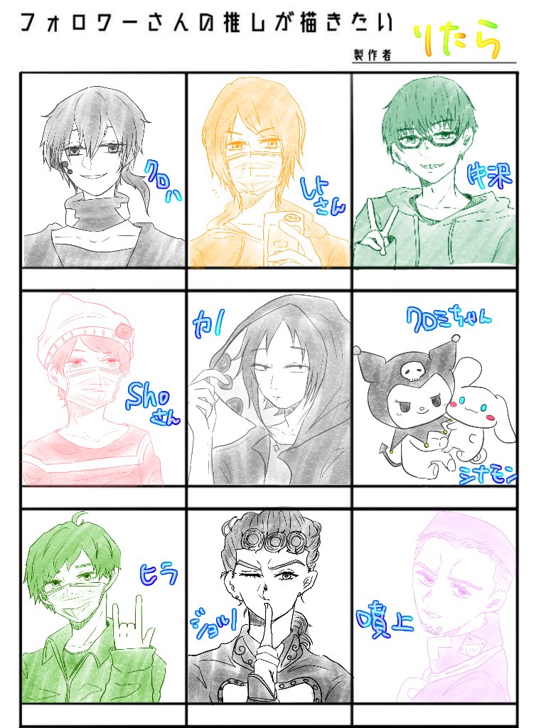 4 8 フォロワーさんの推しが描きたい 描かせて頂きました!ありがとうございました!!全員、実写やオリジナルの画像を元に描いてます🙆 20/03/25 12:49