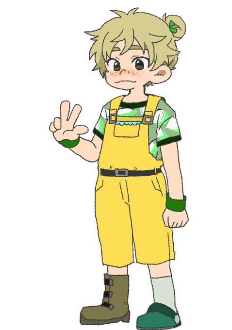 1 11 じゃあ私も載せちゃお〜〜 もくり中に『創ブレちゃん作成時にもらった要素を他の人が使って書いたらどんな子になるか』遊び〜〜 ヤオ神さんがもらってた 金髪 癒し系 キリッとした目 フリル 黄色と緑の服 ベルトが特徴的なブーツ サンダル 野菜 で描きました〜! 23/03/18 21:03