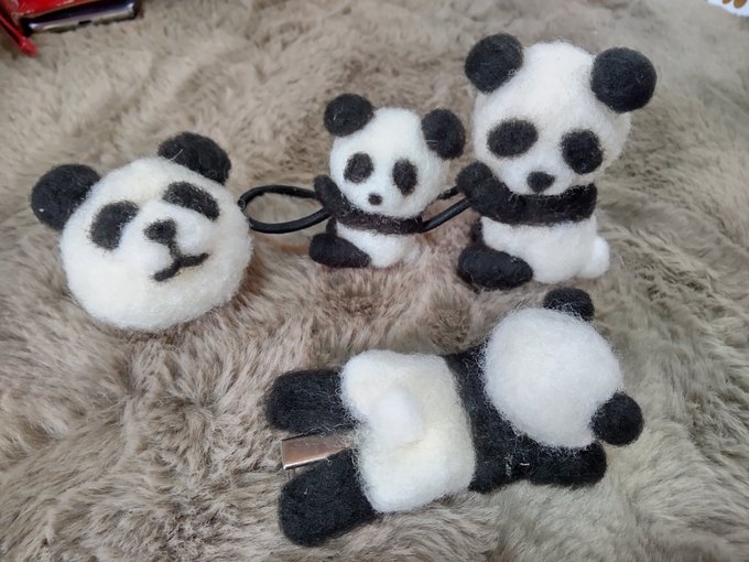 パンダさん達🐼🐾 #羊毛フェルト #髪ゴム