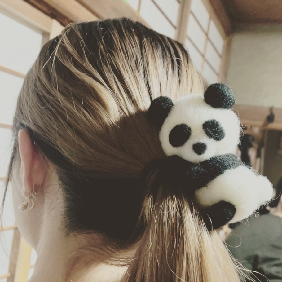 姪っ子の髪にパンダ🐼 抱っこゴム作ってみた♡ #羊毛フェルト