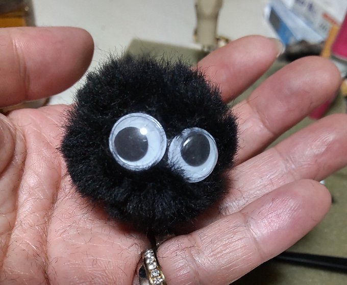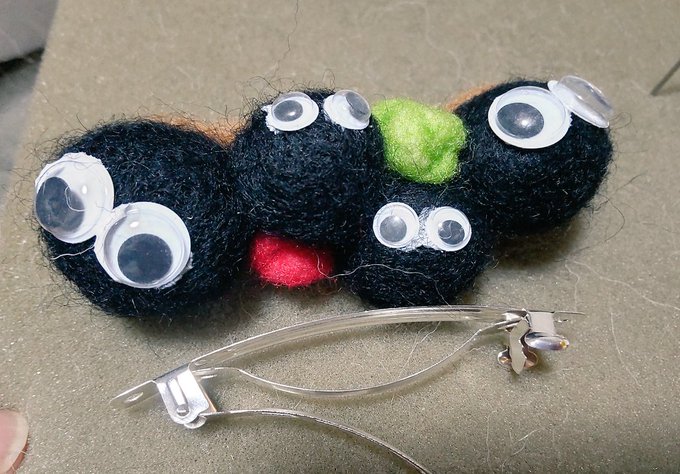 アシスタントちゃんに頼まれた、まっくろくろすけの髪留め制作中( Ꙭ)ꙭ҉ #羊毛フェルト