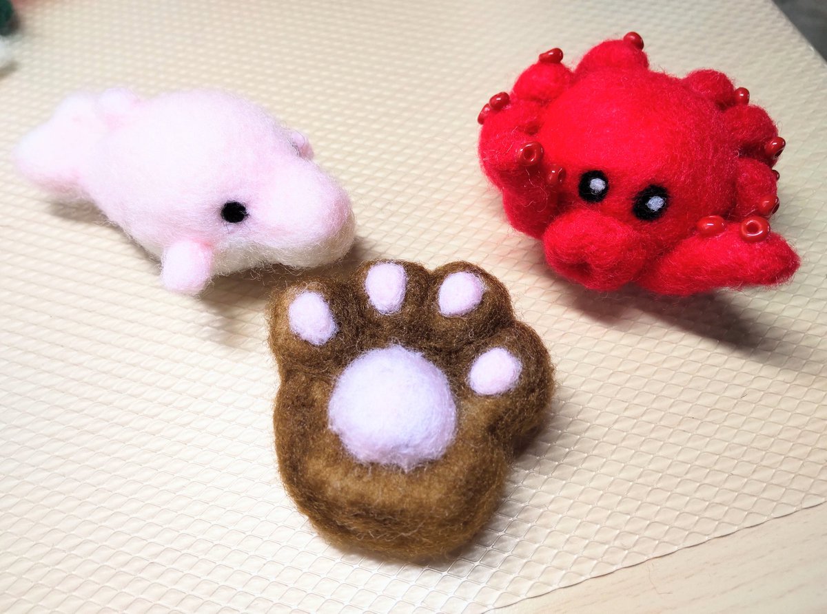 多忙を極め、全くチクチク出来ず、 明後日から休暇に入る嬉しさで思わず復帰笑 1時間の割によく出来た(ˊᗜˋ) #羊毛フェルト #タコ足