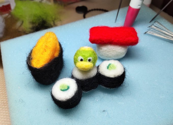 0 1 @Schwarz_Kater 出来たよ~~~! カッパ巻(•Ӫ•)にしたw #羊毛フェルト 22/05/26 21:20