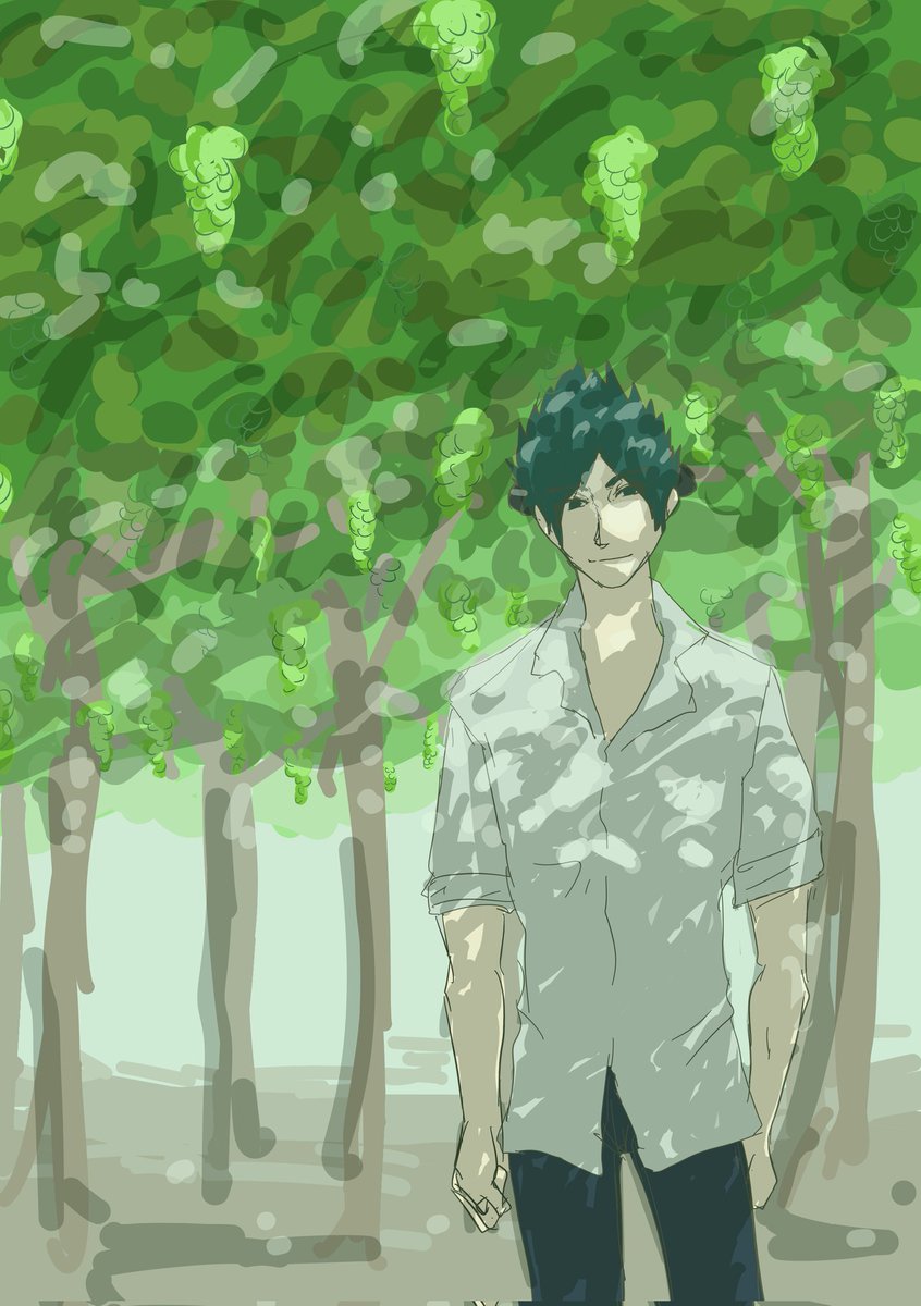 #アフト版深夜の真剣お絵かき60分一本勝負 お題「緑」 ぶどう好きが高じて畑をもってワイン作るみたいなとこまでいく領主様見たいんじゃ~~