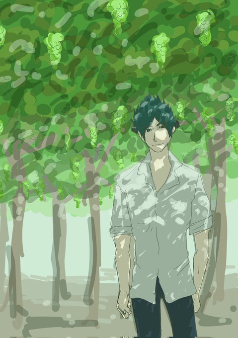 5 23 #アフト版深夜の真剣お絵かき60分一本勝負 お題「緑」 ぶどう好きが高じて畑をもってワイン作るみたいなとこまでいく領主様見たいんじゃ~~ 22/07/09 23:05