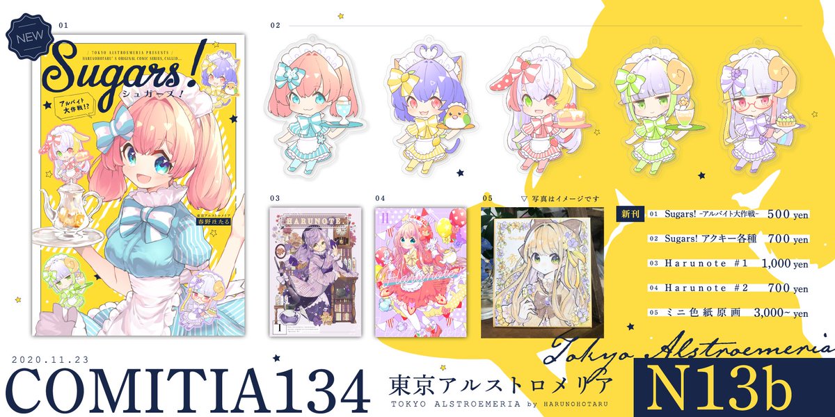 【おしらせ2】 また、COMITIA134に向けて、参加告知ビジュアルとお品書きのデザインも担当させていただきました。 11/23(月)は、【N13b】東京アルストロメリア まで! #COMITIA134