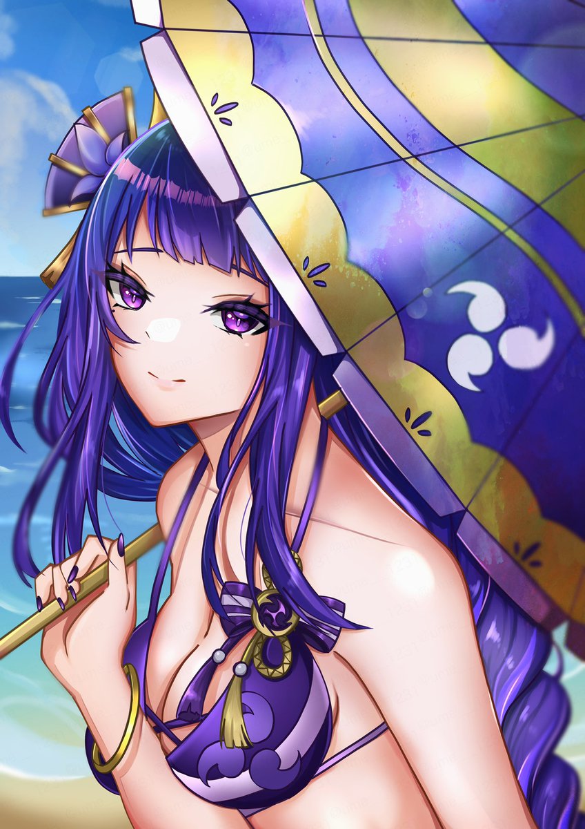 水着影ちゃん描きました~👙 #原神 #Genshin #Genshinlmpact #RaidenEi #RaidenShogun #雷電将軍