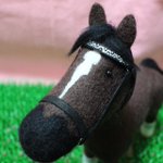羊毛フェルトで作ったオジュウチョウサン✨ ブリンカーの位置が・・・ #羊毛フェルト #馬 #オジュウチョウサン