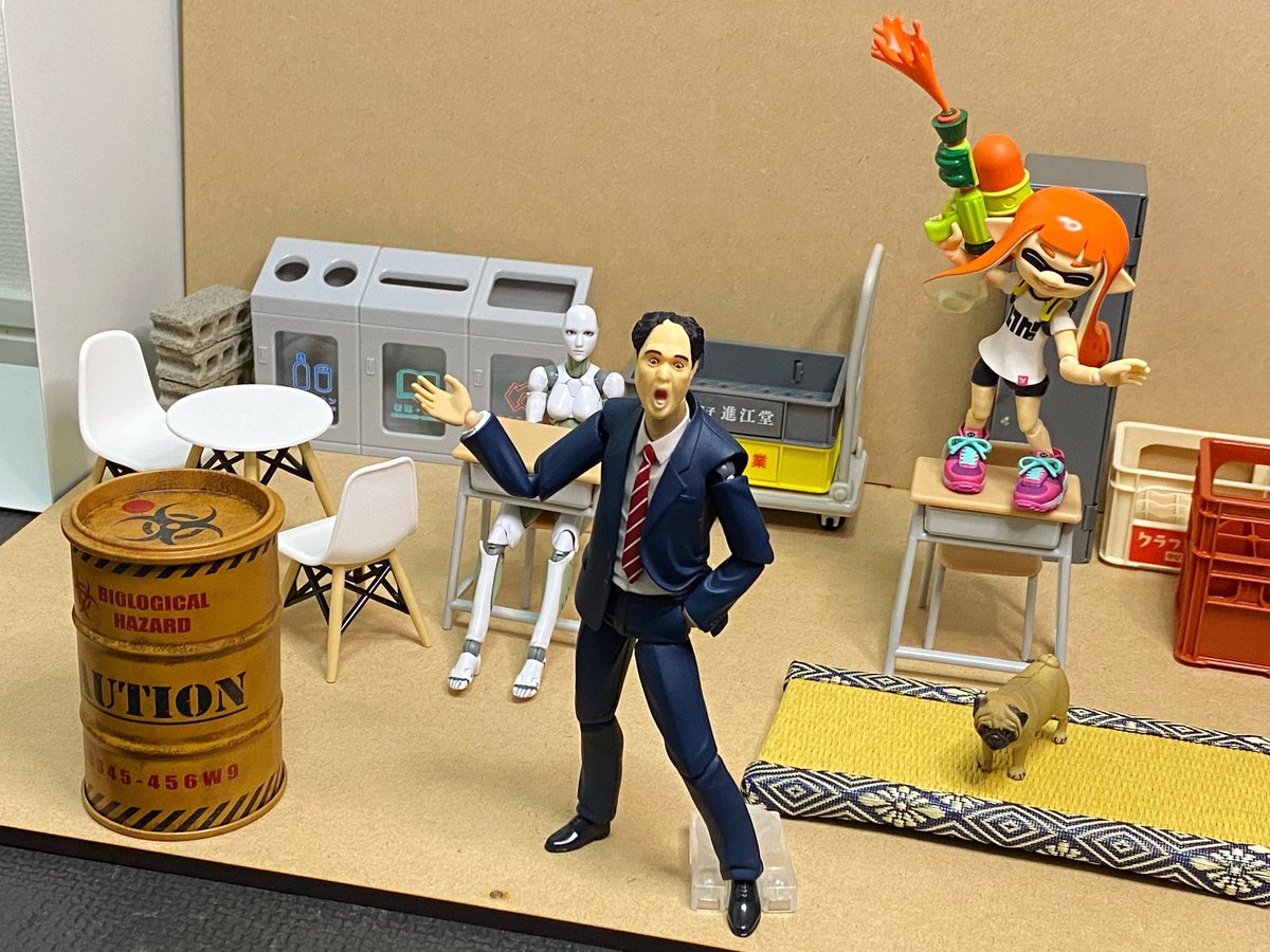 セリアのミニチュア雑貨の充実っぷりがすごかった。これらが安価に揃うとは‼️ 外枠は箱庭技研のジオラマベースRKを購入。👍 Twitterで情報発信していた方々に感謝✨ ありがとうございます❗️🙇♂️ #オモ写 #フィギュア撮影友の会 #夜のフィギュア撮影会