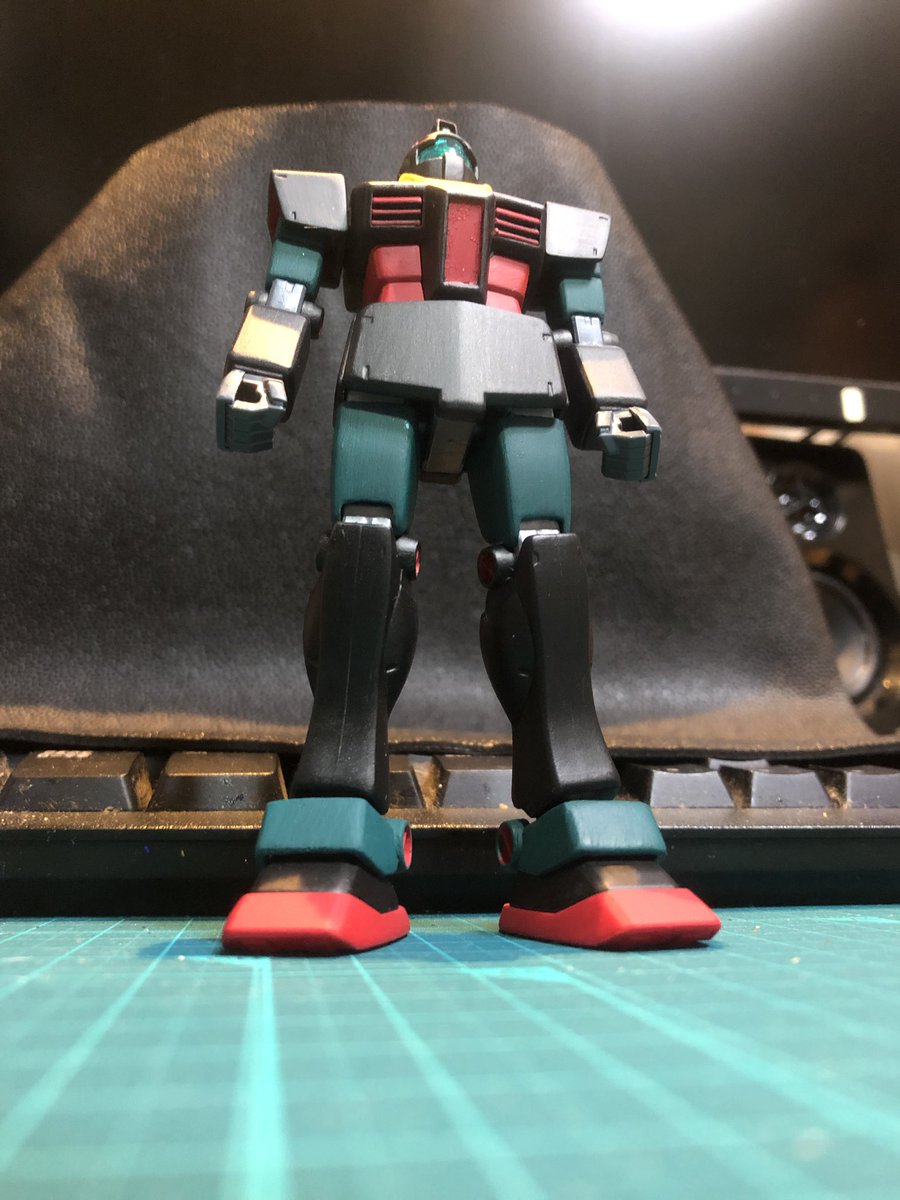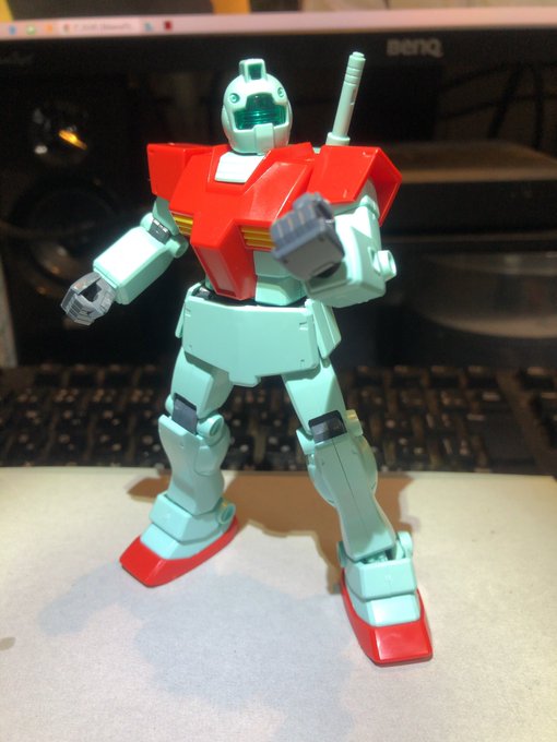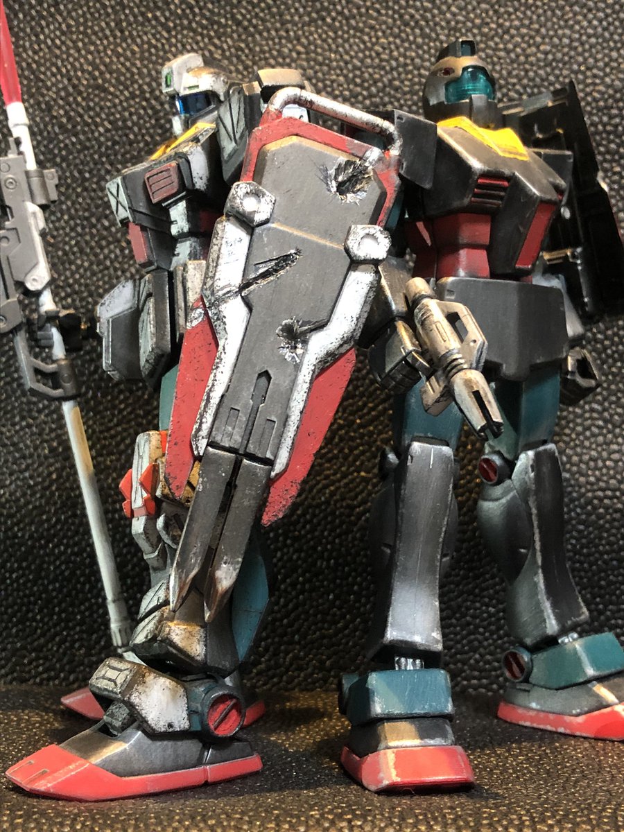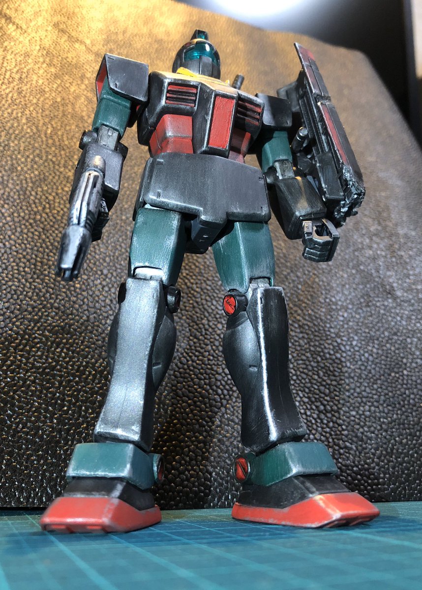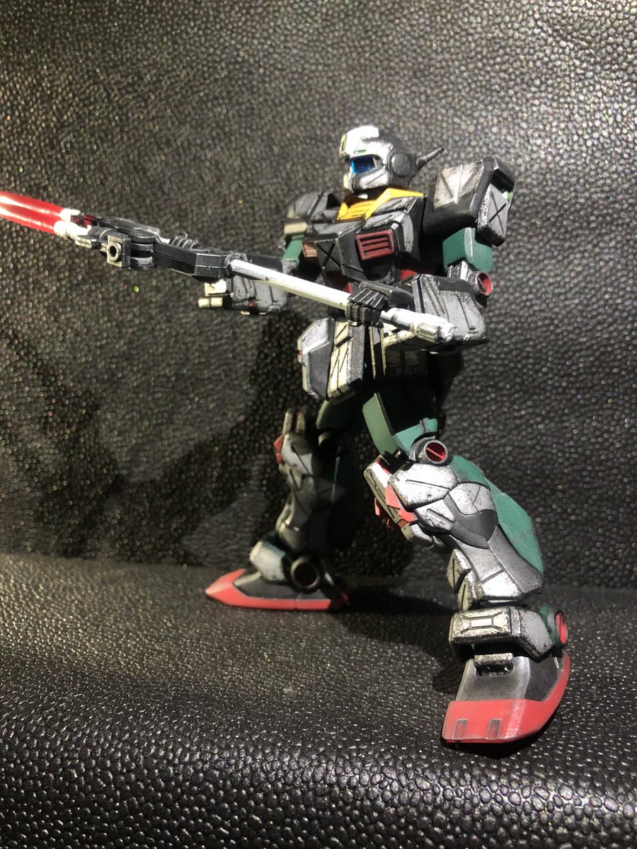 HGジム・ストライカー完成〜 以前作ったジムと色を合わせてみました アーマー部分はガンダムマーカー 緑と赤はアクリルガッシュです #ガンプラ #ジム好き集合 #ガンプラの画像貼るとRTされると聞いて