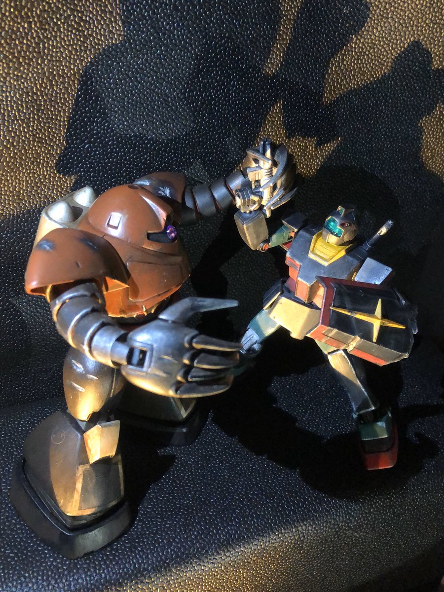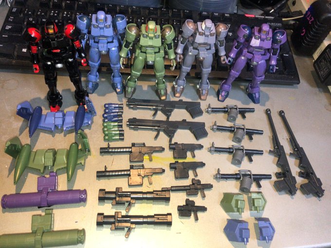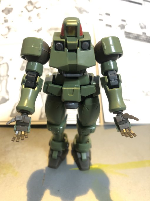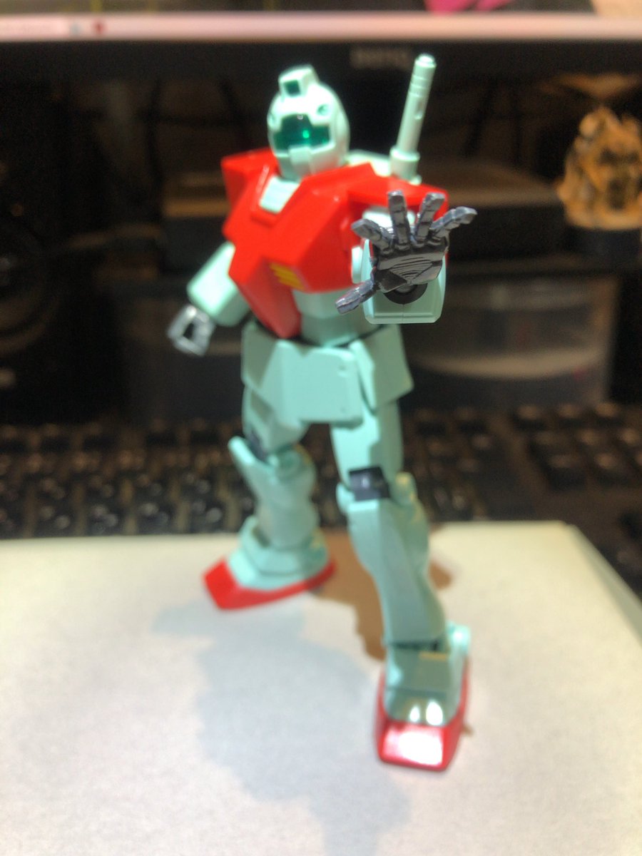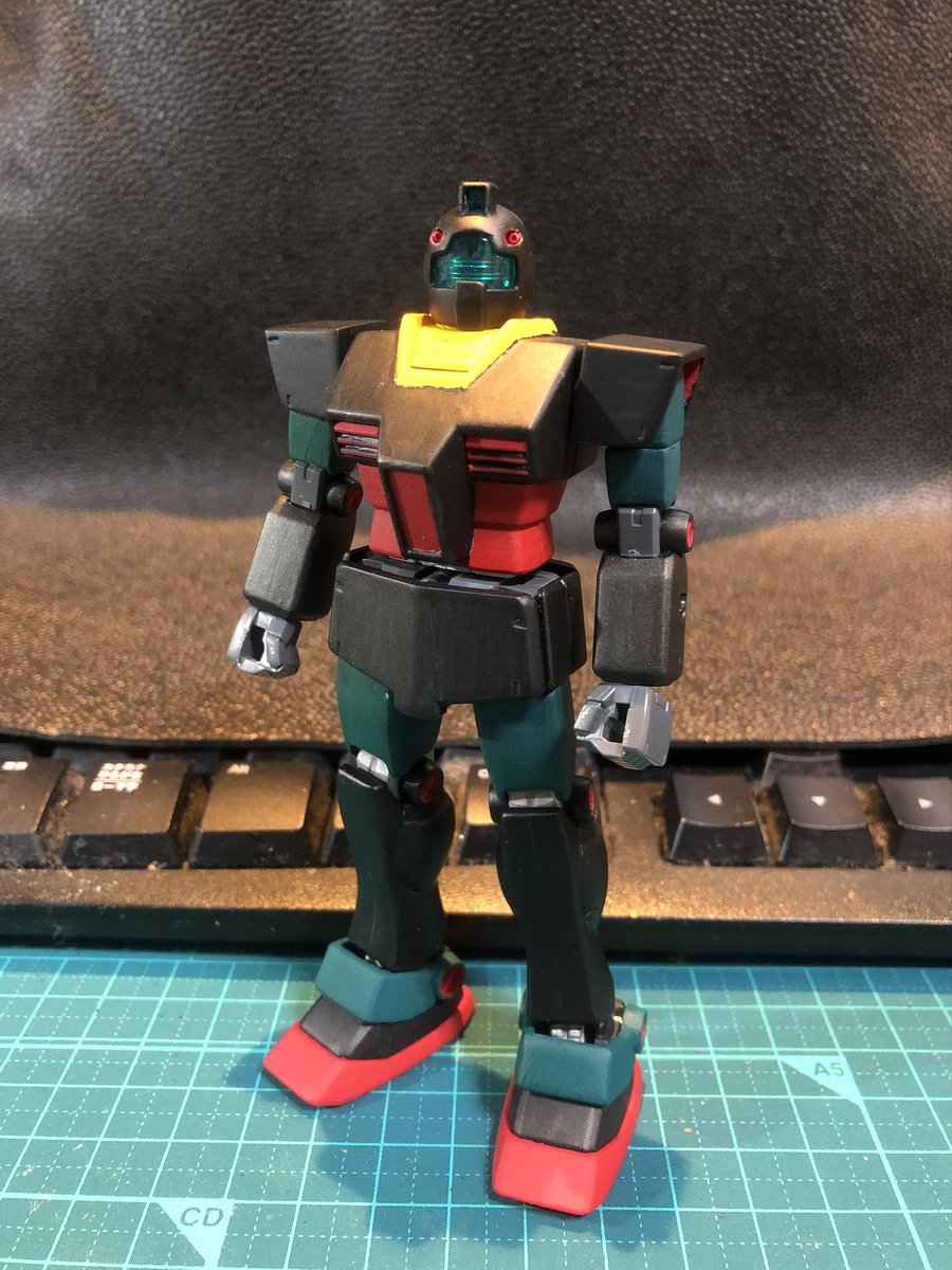 HGジム・ストライカー完成〜 以前作ったジムと色を合わせてみました アーマー部分はガンダムマーカー 緑と赤はアクリルガッシュです #ガンプラ #ジム好き集合 #ガンプラの画像貼るとRTされると聞いて