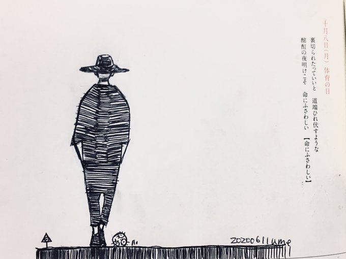 38 167 #amazarashi版深夜の真剣お絵描き60分一本勝負 そういう人になりたいぜ/amazarashi 夕焼け空が悲しいな 世界が終わりそうな色だから 洗濯物は放っておこう 世界は明日も続くけれど 20/05/09 23:09